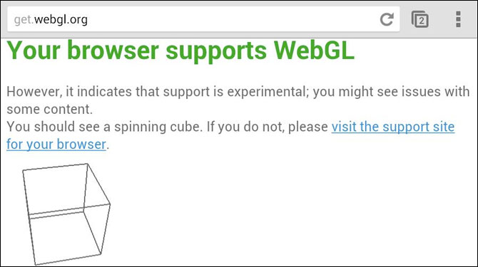 Come si preme di sottolineare l’immagine qui sopra, comunque, facciamo notare che il supporto è per il momento sperimentale, e potreste quindi incontrare qualche problema nella riproduzione dei contenuti che si basano sulla tecnologia WebGL.