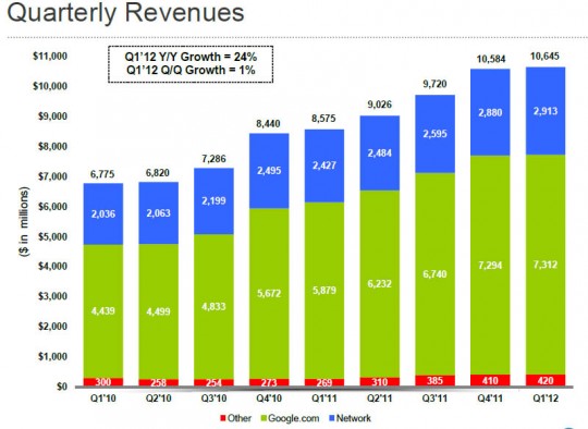 Google: +61% di profitti nel Q1 2012