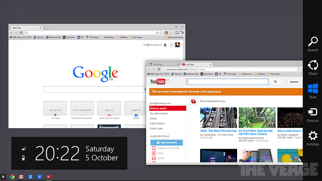 Non molto tempo fa Google annunciava la sua iniziativa Chrome Apps, lanciata per fare in modo di poter utilizzare le app installate su Chrome anche fuori dallo stesso browser, in modo da far loro raggiungere più di una piattaforma. Oggi però sembra che la compagnia abbia anche altro in mente, qualcosa di molto più complesso. Durante le settimane scorse, infatti, Google ha aggiornato la versione per sviluppatori del suo Chrome per fare in modo che, essenzialmente, funzioni come se fosse un Chrome OS all’interno della versione Metro di Windows 8.